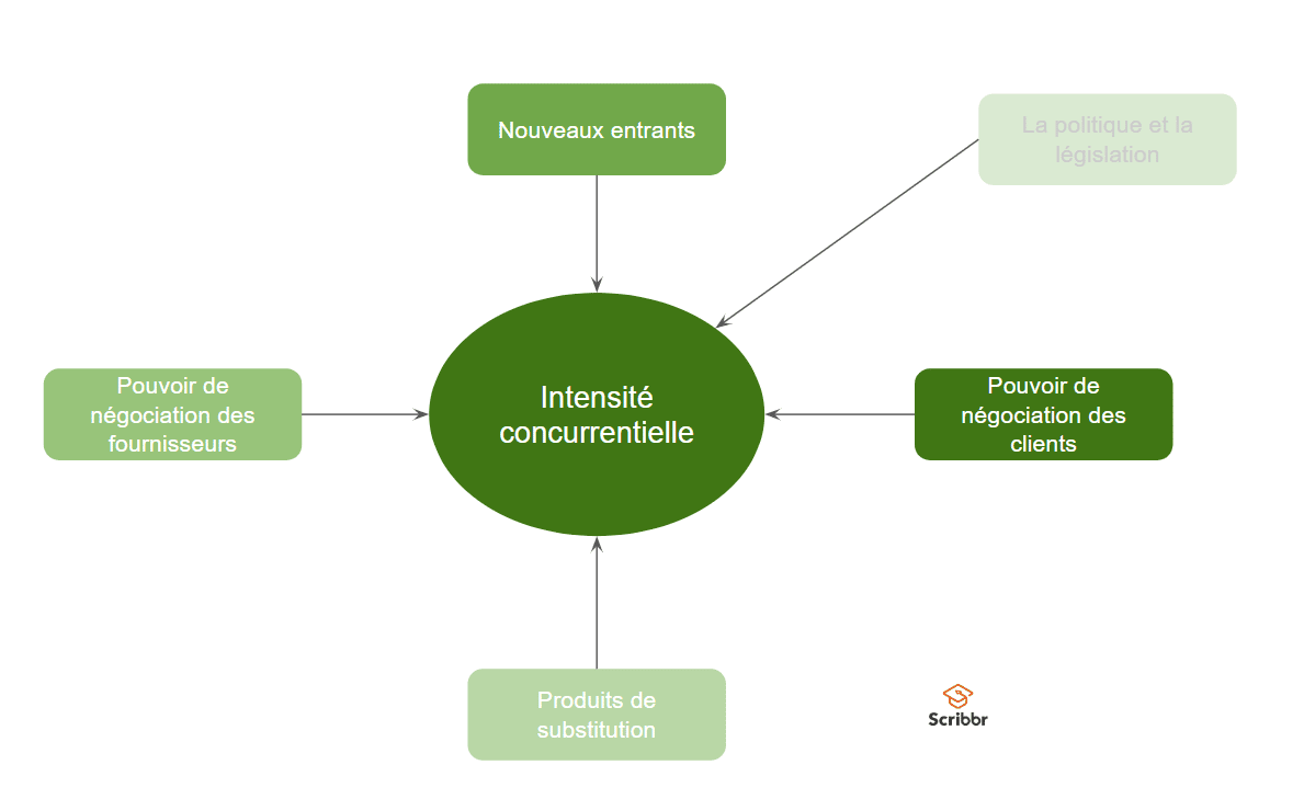 | L’intensité de la rivalité avec les concurrents. | Le rapport de force avec les autres entreprises du secteur conditionne la marge de manœuvre et la survie sur le long terme. |